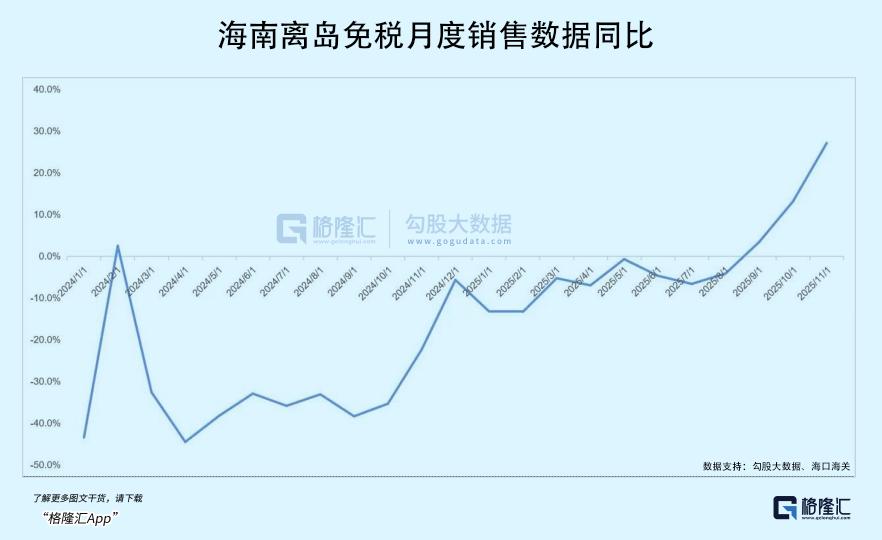 我们先说免税,其实我们去年6月就跟大家提了免税可能会是老登的带头大哥。免税是真的有基本面的,去年5月开始,可以看到海南数据的下滑明显收敛了,到下半年开始,海南的数据已经转为大幅正增长了。