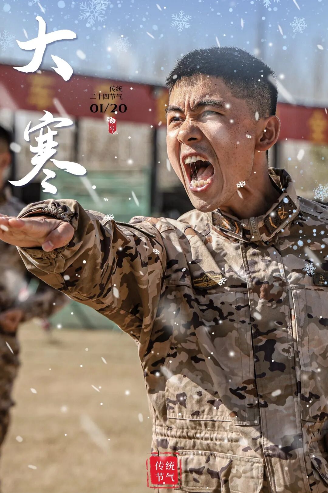 官兵们不畏惧凛冽的寒风,士气高涨如长虹