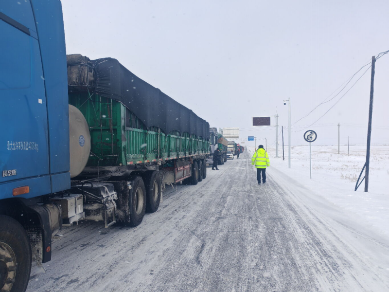 1月14日至15日,赤峰市克什克腾旗大范围降雪致国省干线积雪结冰,大型货车通行受阻。交管大队启动应急预案,实时研判路况,在易拥堵路段设24小时执勤点,构建网格化疏导体系,保障道路通行。
