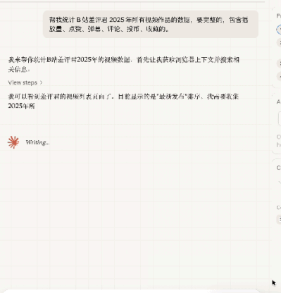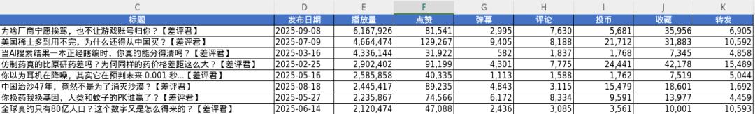 比如我让它统计2025年差评君B站的视频数据,并生成Excel表格。