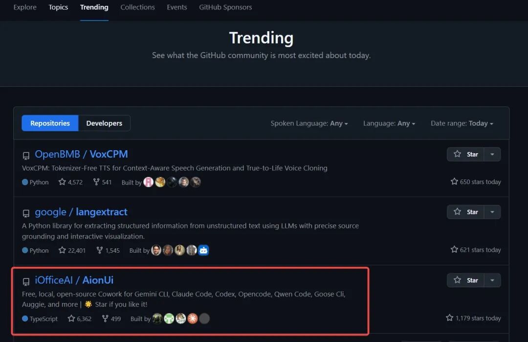 很快,开源社区给出了回应,专门针对这种高价产品。GitHub上先是出现了Openwork,目标明确,要打造一个开源、可扩展的Cowork风格系统,刚开源就登上了Hacker News热榜第一。接着又出现了AionUI,免费、开源且支持多模型,功能和Claude Cowork差不多,却完全免费。