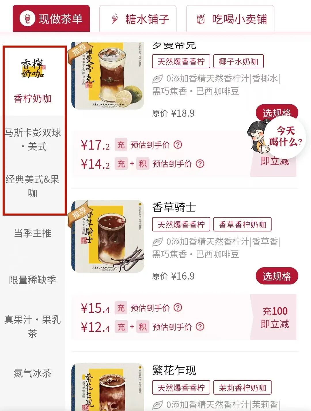 茶颜咖啡菜单