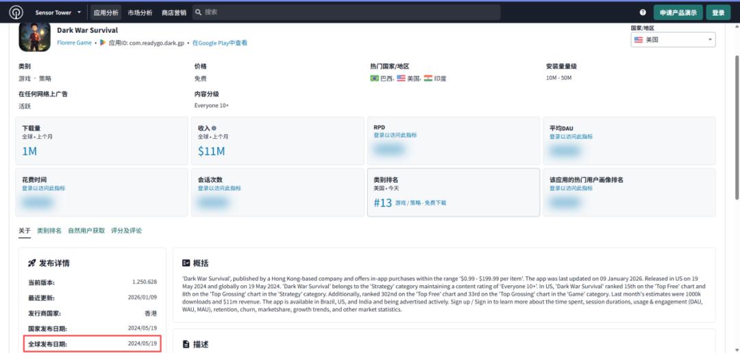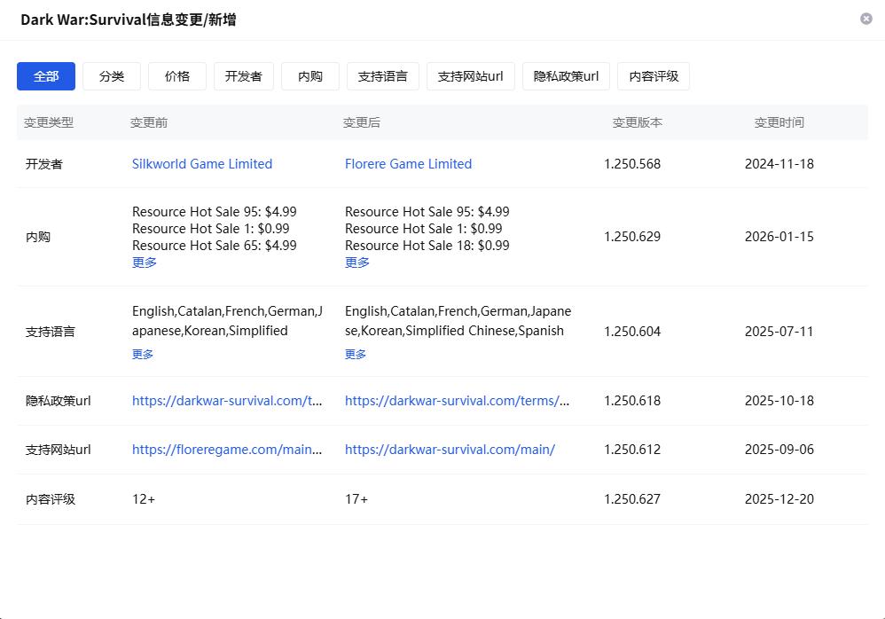 搜索《Dark War Survival》发现,其上线于2024年5月,发行商为Florere Game。但Florere Game成立于2024年9月,因此9月之前必然有其他主体作为发行方。
