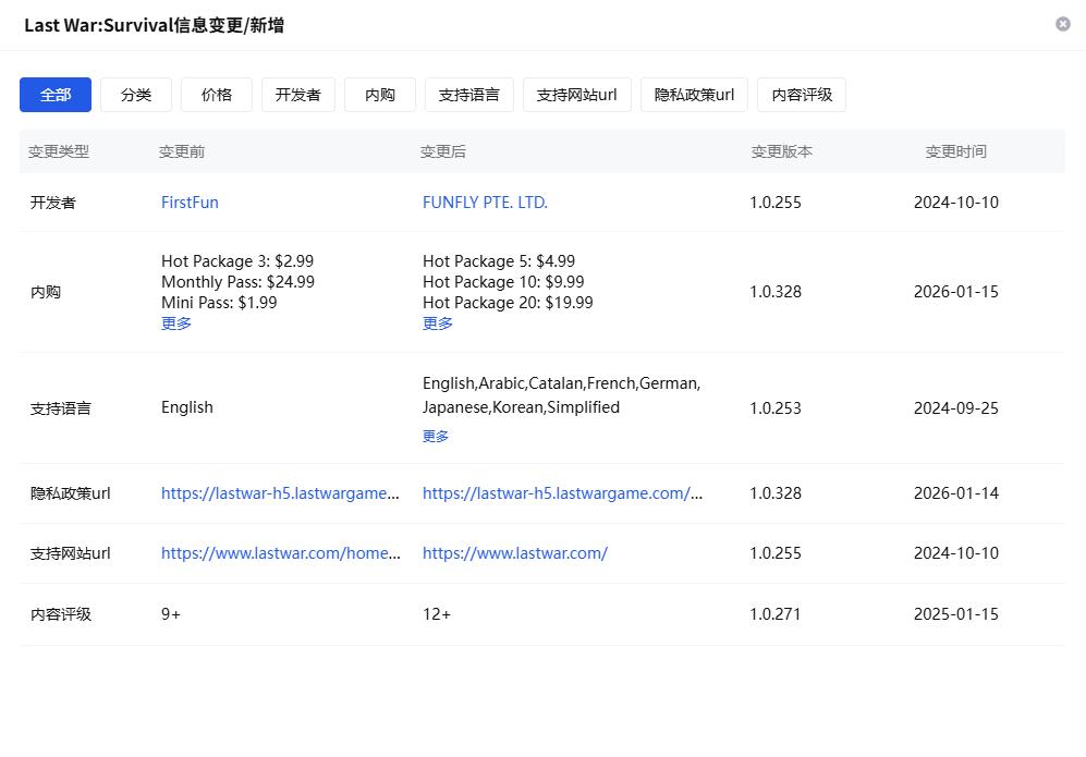 有趣的是,该北京公司已于2025年11月17日注销。其此前的代表性SLG产品《Last War: Survival》因主体变更为新加坡注册的FUNFLY PTE.LTD,未被各大榜单计入国内手游范畴,而实际上该游戏2025年的表现极为出色。