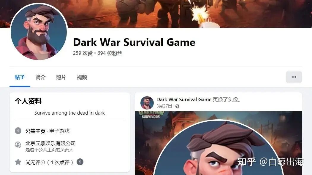 《Dark War Survival》2024年3月开设的Facebook主页显示,负责企业正是这家北京公司。