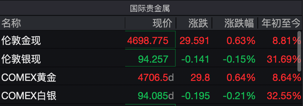 黄金的期货与现货价格双双攀升至4700美元以上。