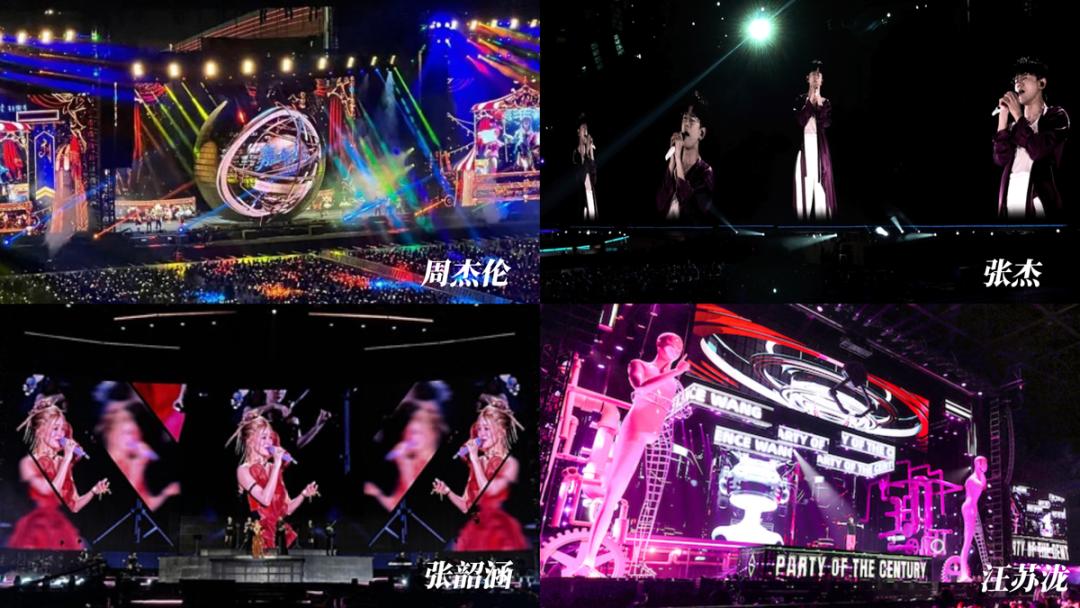 顶级巡演的投入不仅提升了观演体验,更推动行业在技术、制作、商业模式上全面升级。以LED屏为例,2025年国内演唱会的应用创新层出不穷:周杰伦的球形屏与透明屏、张杰鸟巢演唱会的超大面积透明屏、张韶涵的高还原度巨幕、汪苏泷的360°环形屏,均打造出沉浸式视觉场域。