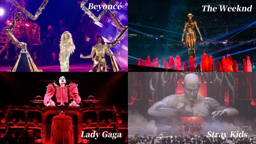 事实上,巨型装置已成为近年国际巨星演唱会的标配:The Weeknd的7.3米高机器人巨像、Beyoncé的工业机械手臂、Drake的巨型Virgil Abloh雕像、Lady Gaga的三层楼高红色塔裙、Stray Kids的巨型充气人偶,均以震撼视觉效果吸引关注。