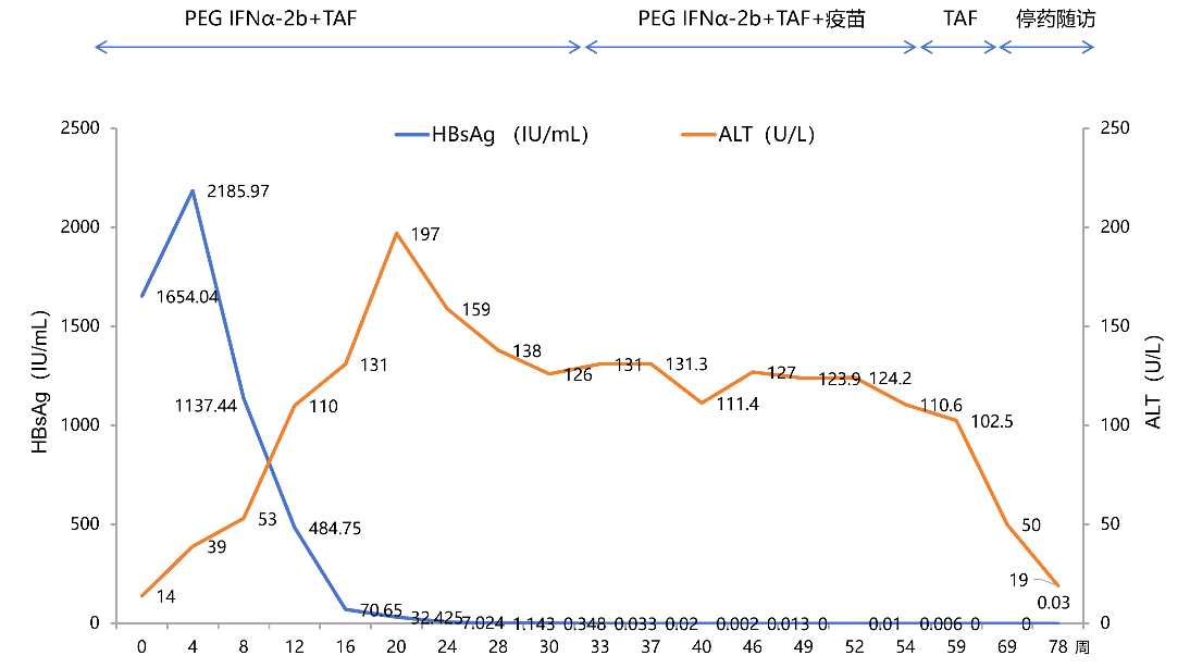 •随访至69周:持续HBsAg血清学转换,ALT恢复正常