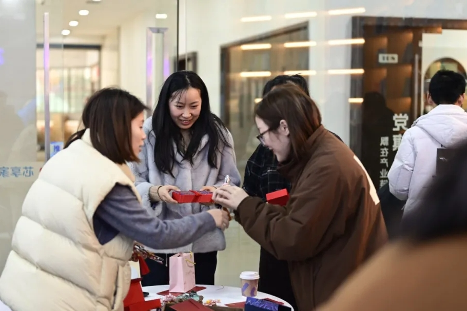 各产业链党群服务阵地开设“暖冬服务专窗”,提供热饮、应急暖贴、共享保暖毯等物资,保障公共区域温暖舒适。针对企业员工需求,阵地还组织午间沙龙、非遗体验等活动,帮助员工缓解工作压力,感受冬日温暖。