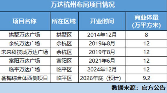 目前,万达在杭州已开业的5座广场中,除最早的拱墅万达广场为重资产项目外,余杭、富阳、未来科技城及临平万达广场均采用轻资产模式运营。