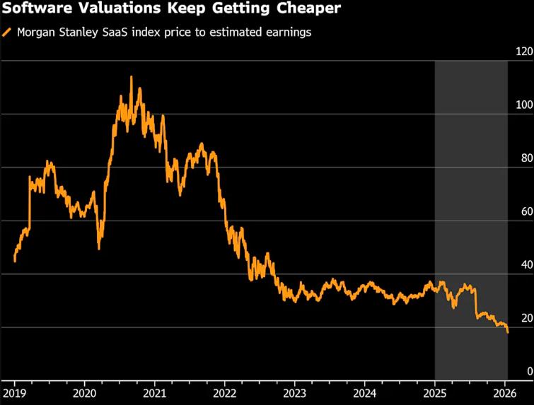 Osterweis Capital的Wong说:“软件公司过去估值高,是因为订阅模式带来的经常性收入能长期稳定增长。可要是面对24小时不间断运行、能完成任务、一天搞定大项目的AI智能体,就很难确定软件股该用什么估值倍数交易了。”