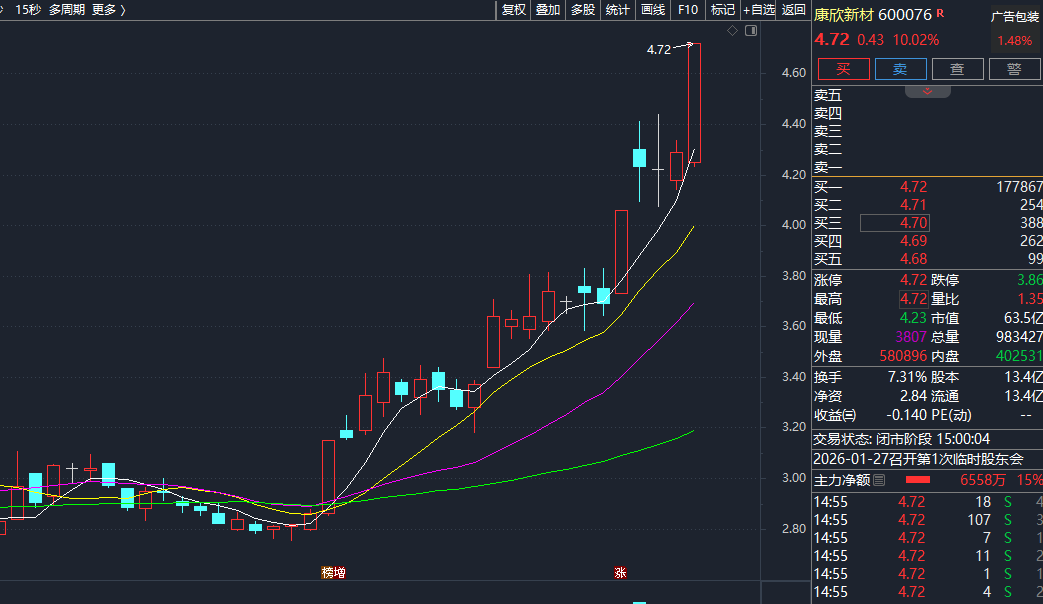 同日,康欣新材股价逆市走高,尾盘牢牢封住涨停板,总市值随之攀升至63亿元。实际上,康欣新材在二级市场早已是“牛股”代表——自去年4月9日起,其股价累计涨幅已超150%。