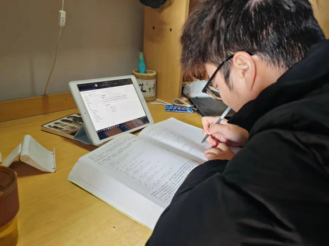 研一刚入学,宿舍就形成了浓厚的学习氛围,大家常聚在一起讨论各课题组的研究进展、方法与趋势。考试周时,图书馆的固定座位成了他们的“战场”:每天清晨一同出发,傍晚结伴返回,遇到难懂的知识点便围坐讨论——有人梳理理论框架,有人举例验证,有人补充细节,互相监督进度、查漏补缺。这种学习模式为后来面试中的算法题考核筑牢了基础,让他们在技术测试中更有底气。