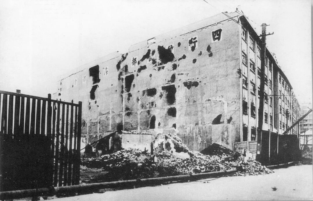 上图为1937年四行仓库西墙上留下的累累弹痕
