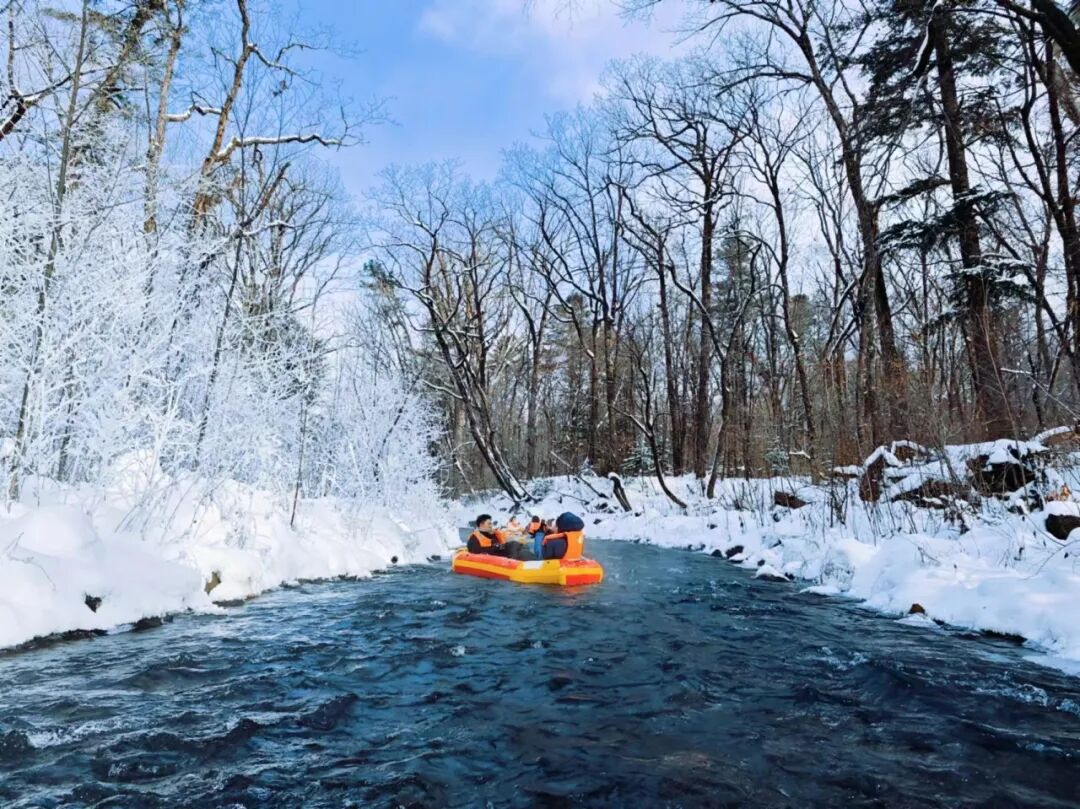 长白山脚下的露水河严冬不封冻,是冬季漂流绝佳地。坐上皮划艇穿梭雾凇长廊,清澈河水雾气蒸腾,宛如仙境;与“魔界”奇幻感不同,这里的漂流更显静谧原始。