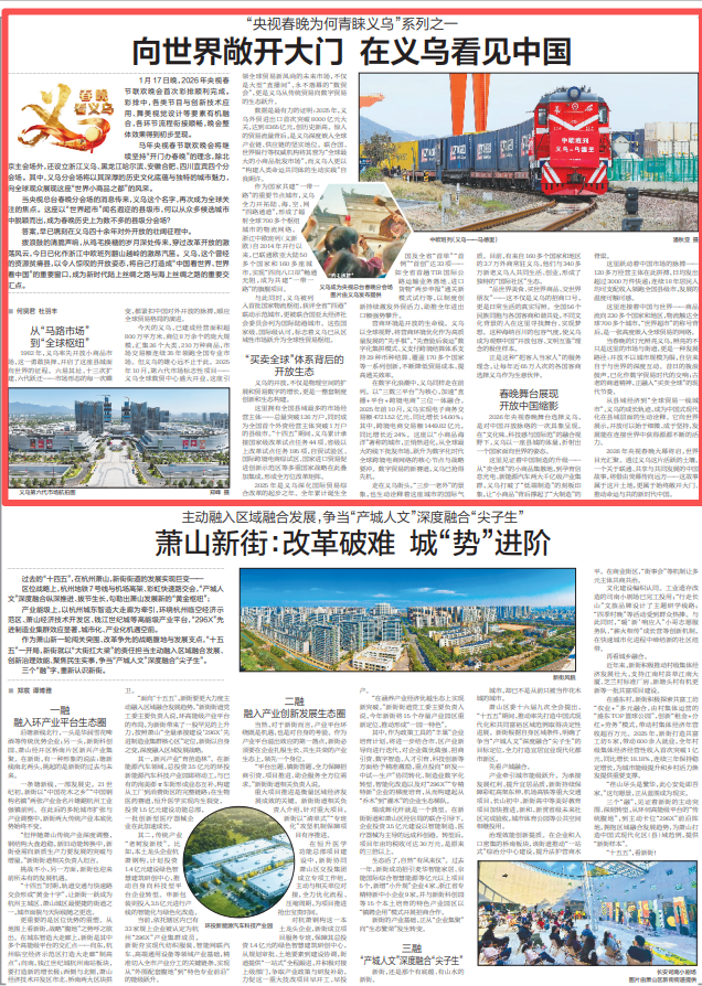 1月20日,《浙江日报》刊发《“央视春晚为何青睐义乌”系列之一 向世界敞开大门 在义乌看见中国》,聚焦义乌四十余年对外开放历程,其已成为“中国看世界、世界看中国”的重要窗口,也是新时代陆海丝绸之路的关键交汇点。