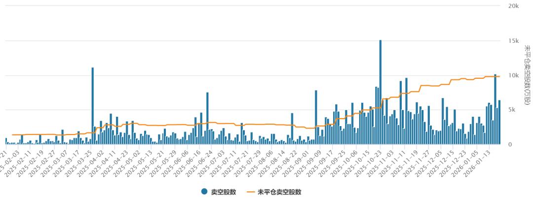 消费市场的波动传导至资本市场。Wind数据显示,2025年8月以来,泡泡玛特的未平仓卖空股数直线上升,一度接近1万股。