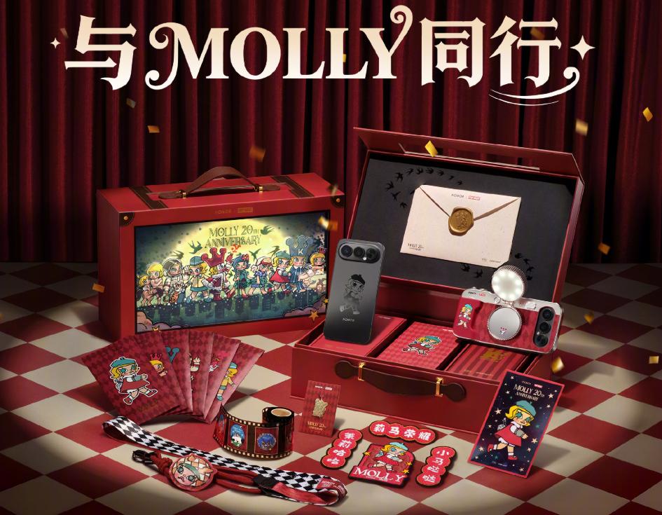 回购公告发布当天,泡泡玛特还与荣耀合作推出“荣耀500 Pro MOLLY 20周年限定版”手机。该产品并非简单贴标,除后盖印有MOLLY形象外,系统还包含专属UI主题、开机动画及拍照水印等定制内容。