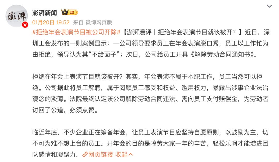 第三,休息权不容侵犯:深圳工会指出,若年会在工作时间外强制参加且无补休或加班费,本身涉嫌违法,更别提占用私人时间排练。