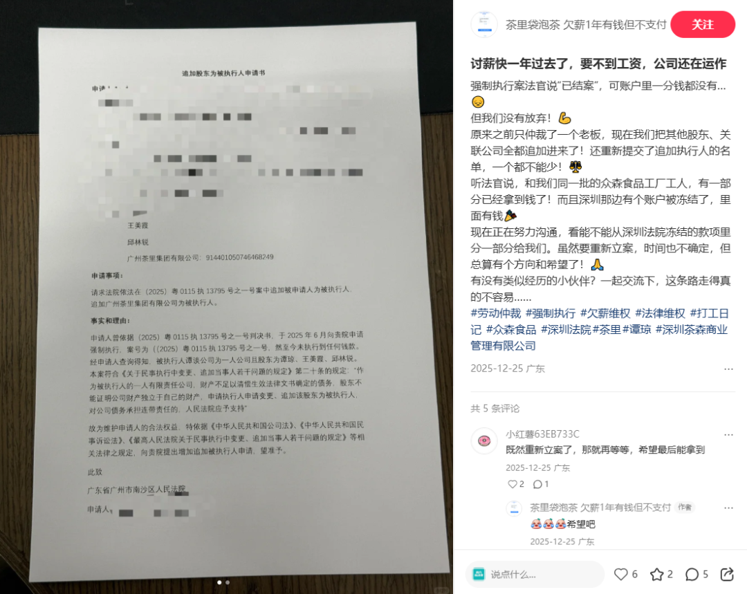 据媒体报道,多名自称茶里员工的网友在社交平台爆料,公司拖欠薪资问题严重,部分员工数月未领工资,公积金也已多月未正常缴纳。