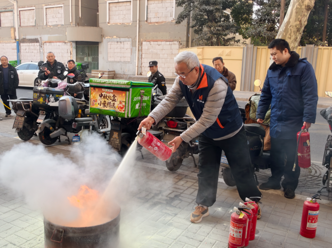 1月14日,社区微型消防站迎来了北片居民区平安条线干部及各小区物业安全管理人员。培训先以知识讲座开场,消防人员围绕冬季火灾隐患特点、初期火情处置、火场逃生要点等内容展开详细讲解。随后,参训人员在微站队员的指导下进行灭火器实操,严格遵循“提、拔、握、压”四步流程,亲身体验灭火过程,切实掌握初期火灾处置技能。