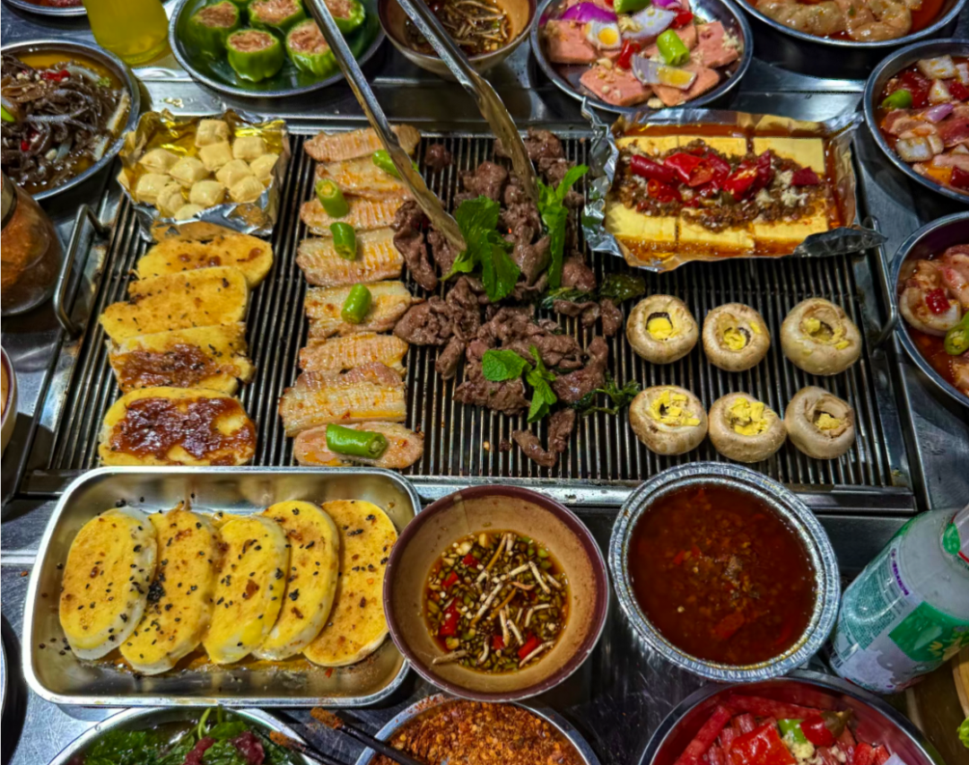 采用铁架网炭火烤制多种食材,充满烟火气,一边享受美食一边与朋友畅聊,是不错的体验。