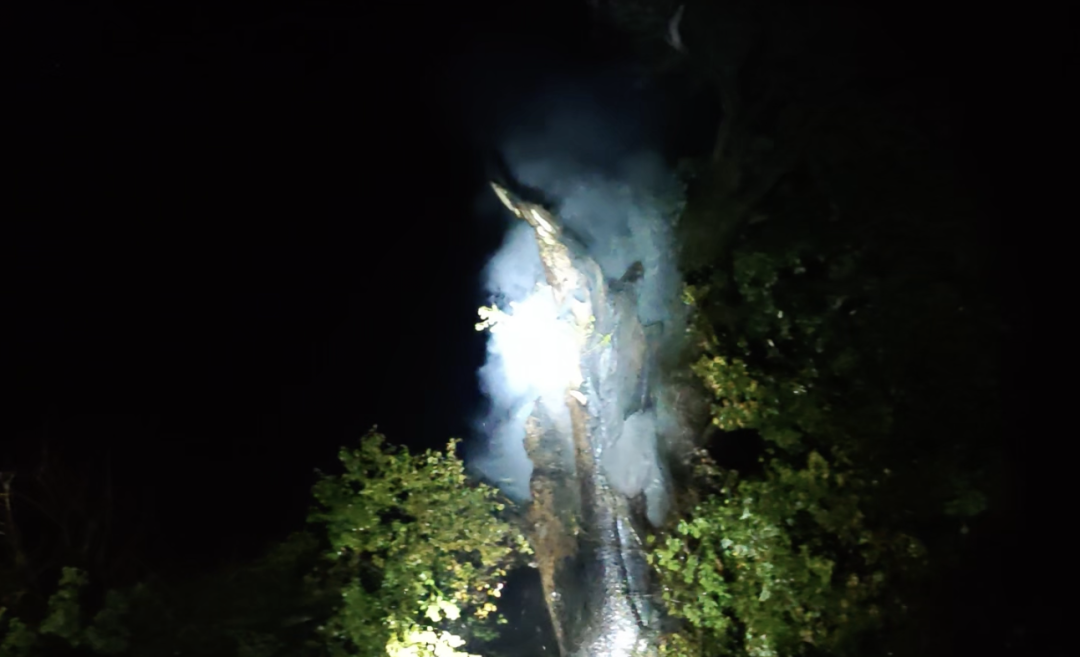 随后,消防员对树干内部火苗进行彻底清理以防复燃,经过约26分钟处置,火情被完全扑灭。