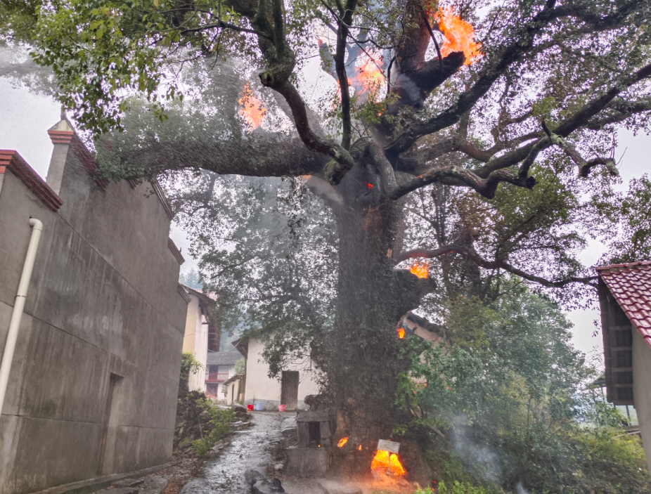 村民喂家禽时意外发现400年古树起火 消防紧急扑救守护历史遗产