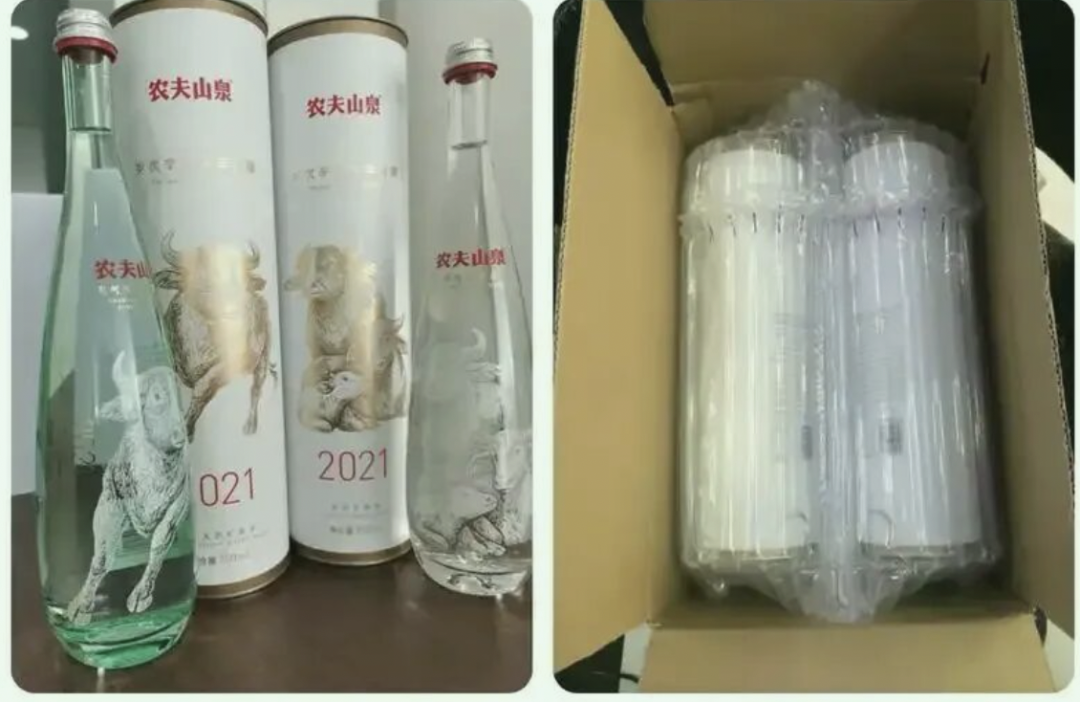 农夫山泉回应称,生肖典藏玻璃瓶水取自长白山莫涯泉,瓶身设计耗时三年,推出十一年来坚持“只送不卖”。产品定位是感恩回馈消费者,作为品牌与消费者沟通的载体,传递文化和祝福。