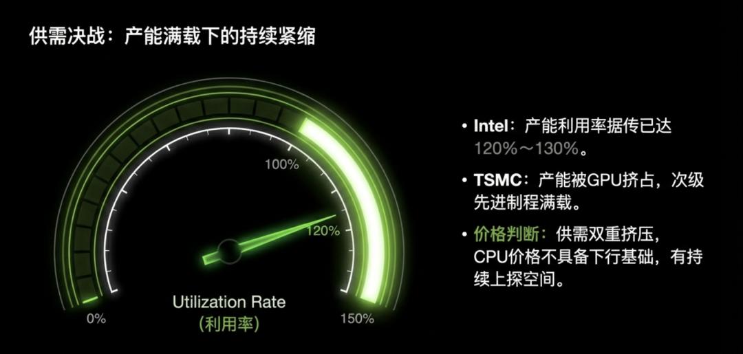 如前文所说,Intel的产能利用率据说已经达到120~130%,而AMD主要依赖TSMC。前面已经提到,TSMC的先进工艺产能尽量给了更受青睐的GPU,稍次一点的产能现在也已经满载,提升空间不大。有消息表明,2026全年Intel和AMD的CPU配额已经被预定完毕。
