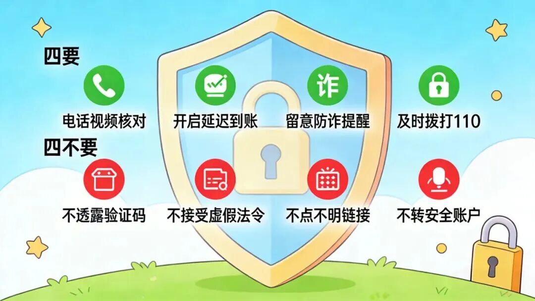 2.微信、支付宝要开启转账延迟到账功能,发现被骗可及时撤回。