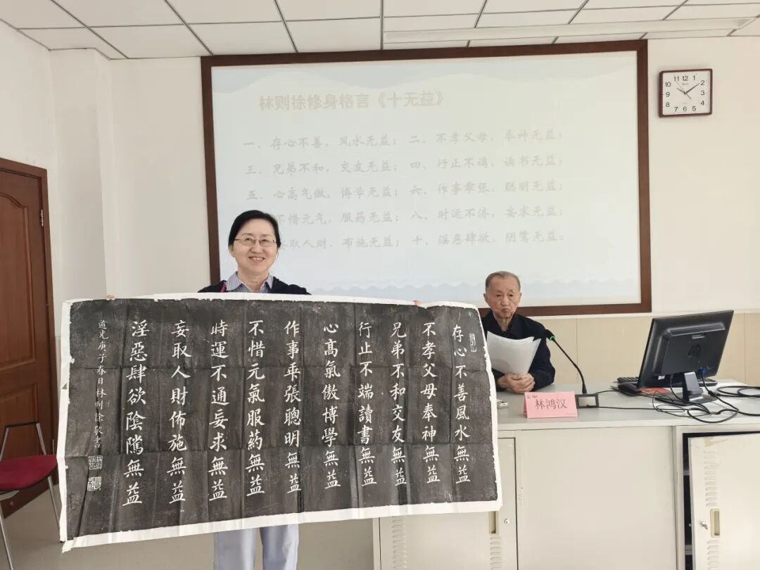 “退休前我在烷基苯厂子弟学校和金陵石化职工大学任教,一直关心企业发展与青工成长。我常回公司开展爱国主义教育,带领石化青年学习林则徐‘爱国惟民’精神、廉洁自律品质、‘无一事不尽心、无一事无良策’品格及‘十无益’家教家风,希望青年一代在公司高质量发展中贡献力量。”林鸿汉在金陵石化团干部培训班上语重心长地叮嘱。
