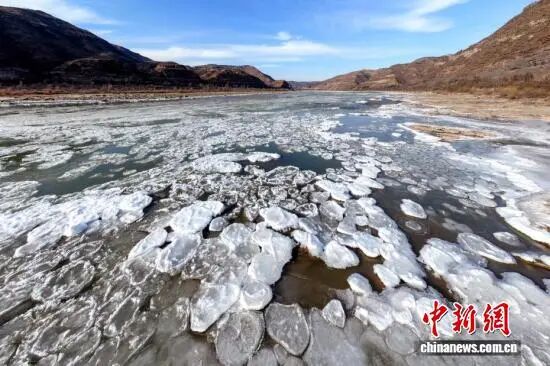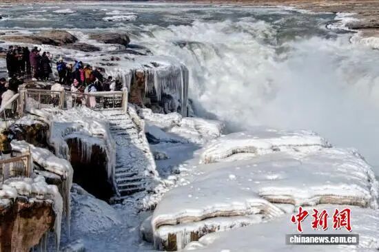 山西吉县黄河壶口瀑布呈现流凌封河景观