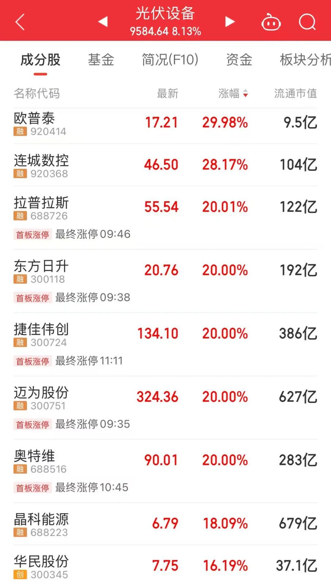 早盘交易中,太空光伏与太空旅游概念领涨市场。其中太空光伏概念表现尤为突出,带动光伏设备、BC电池、POE胶膜等光伏细分板块集体走高。