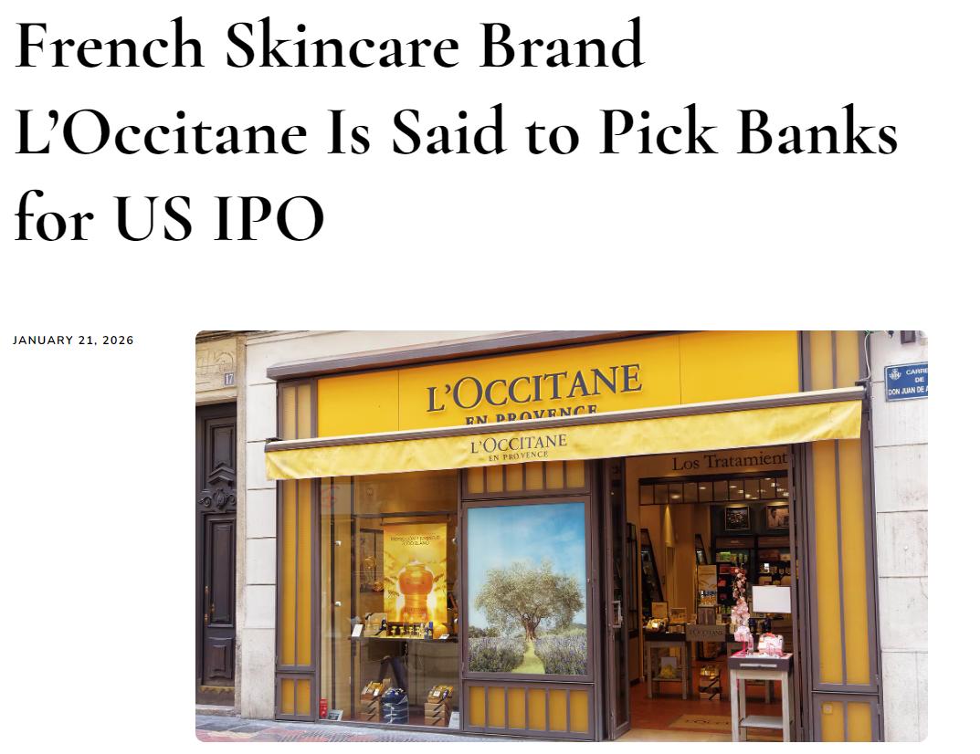 日前(1月21日),据美国时尚媒体Fashnfly援引知情人士消息,被亿万富翁Reinold Geiger私有化的护肤品零售商欧舒丹集团,计划今年内在美国首次公开募股。