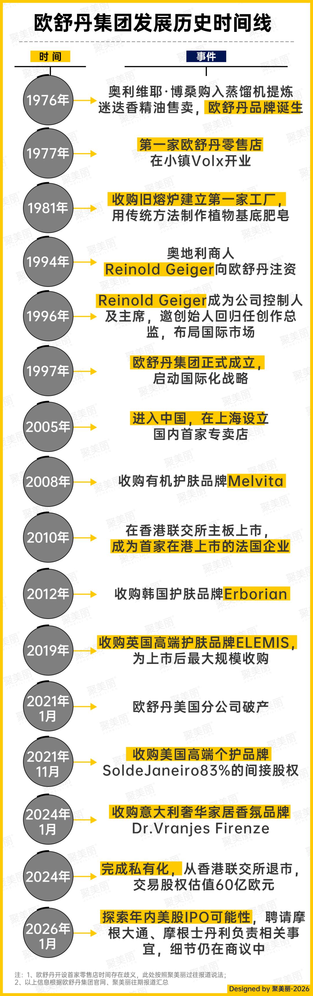 欧舒丹集团是1976年由奥利维耶・博桑创立的法国普罗旺斯高端个护美妆企业,核心基地在法国马诺斯克,主打天然植物萃取产品。