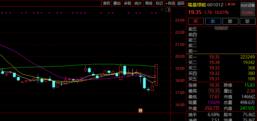 午后光伏概念持续拉升,隆基绿能封死涨停,连城数控、欧普泰、拉普拉斯等个股此前已涨停,艾能聚、天合光能、高测股份、帝科股份等涨幅居前。