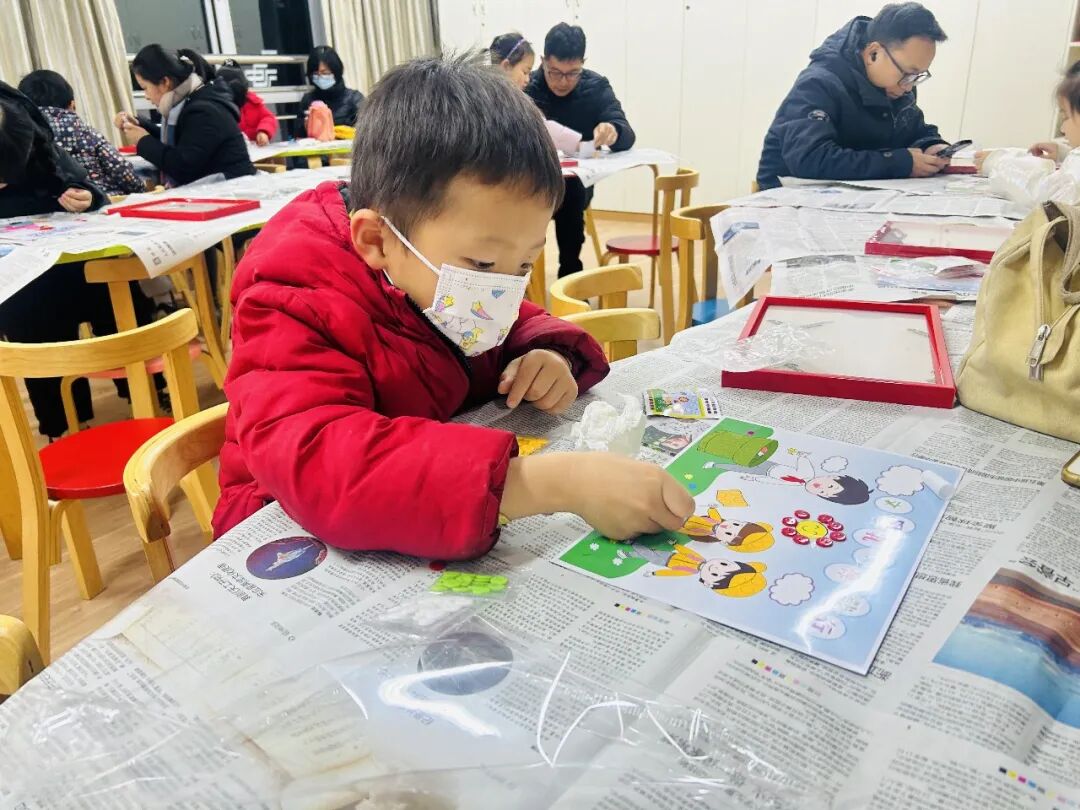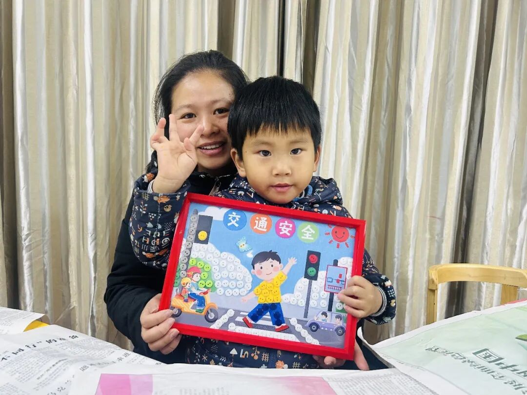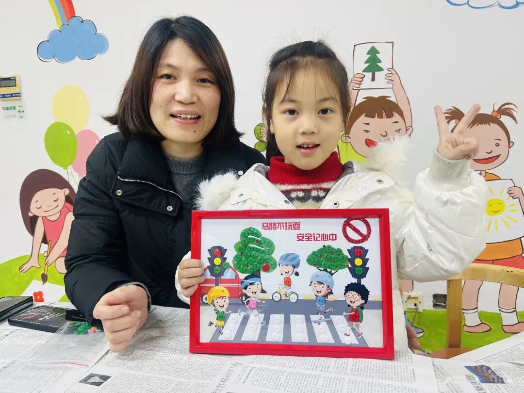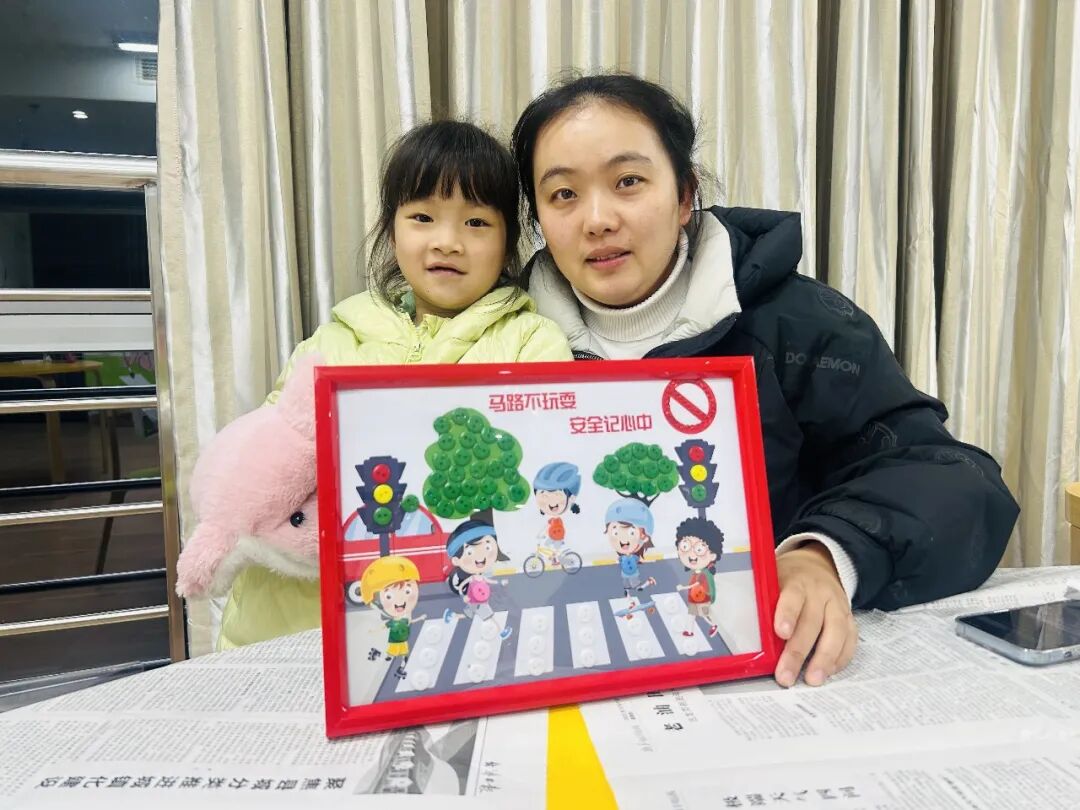 活动现场,孩子们在家长的陪伴下,专注地挑选各色纽扣,细致地进行拼贴。原本普通的一粒粒纽扣,经过亲子间的巧妙构思与协作,慢慢变成了“礼让行人”的暖心场景、垃圾分类的清晰标识、青山绿水的生态美图。每一幅作品都承载着家庭对文明城市的独特理解与美好向往。