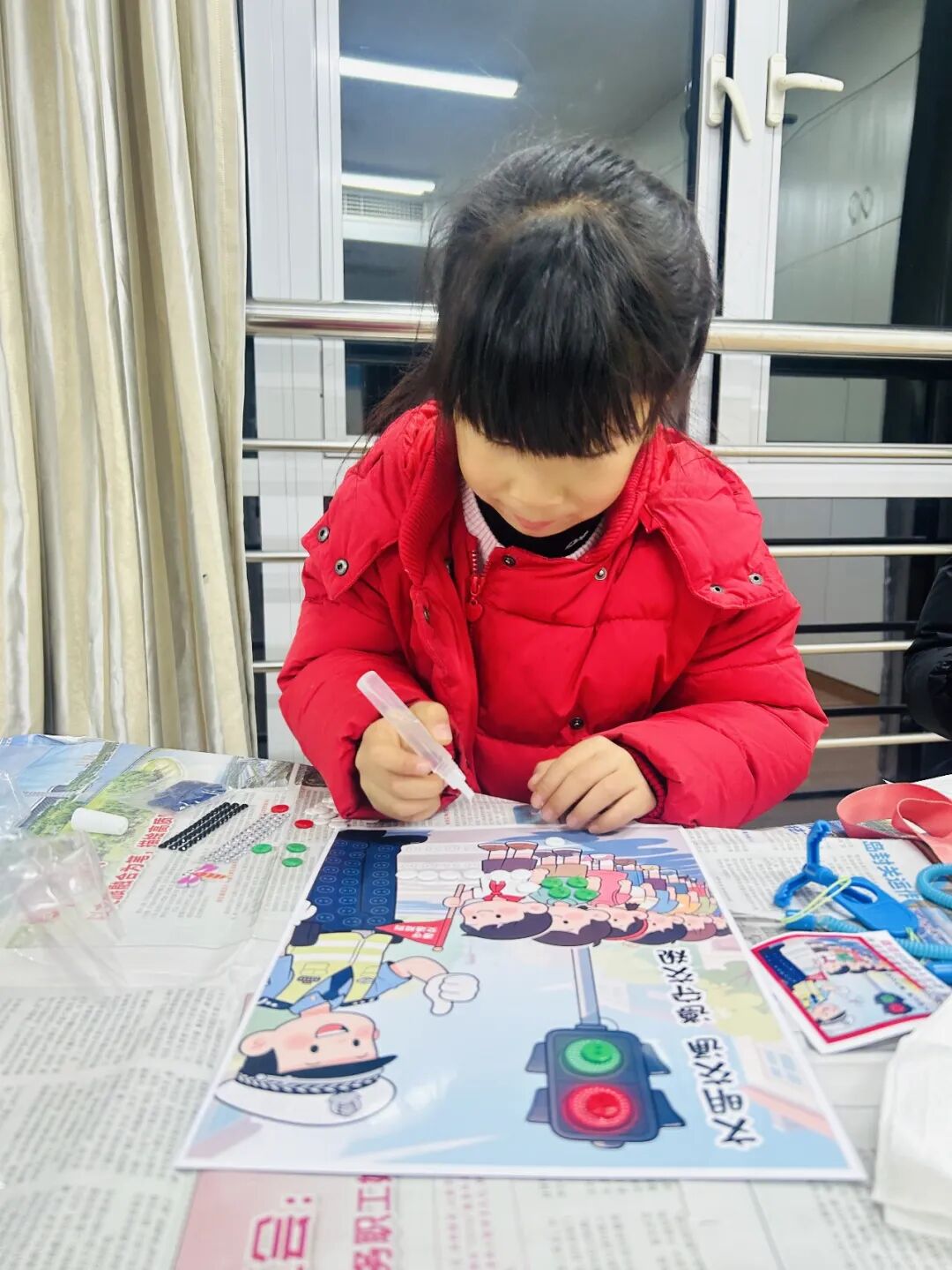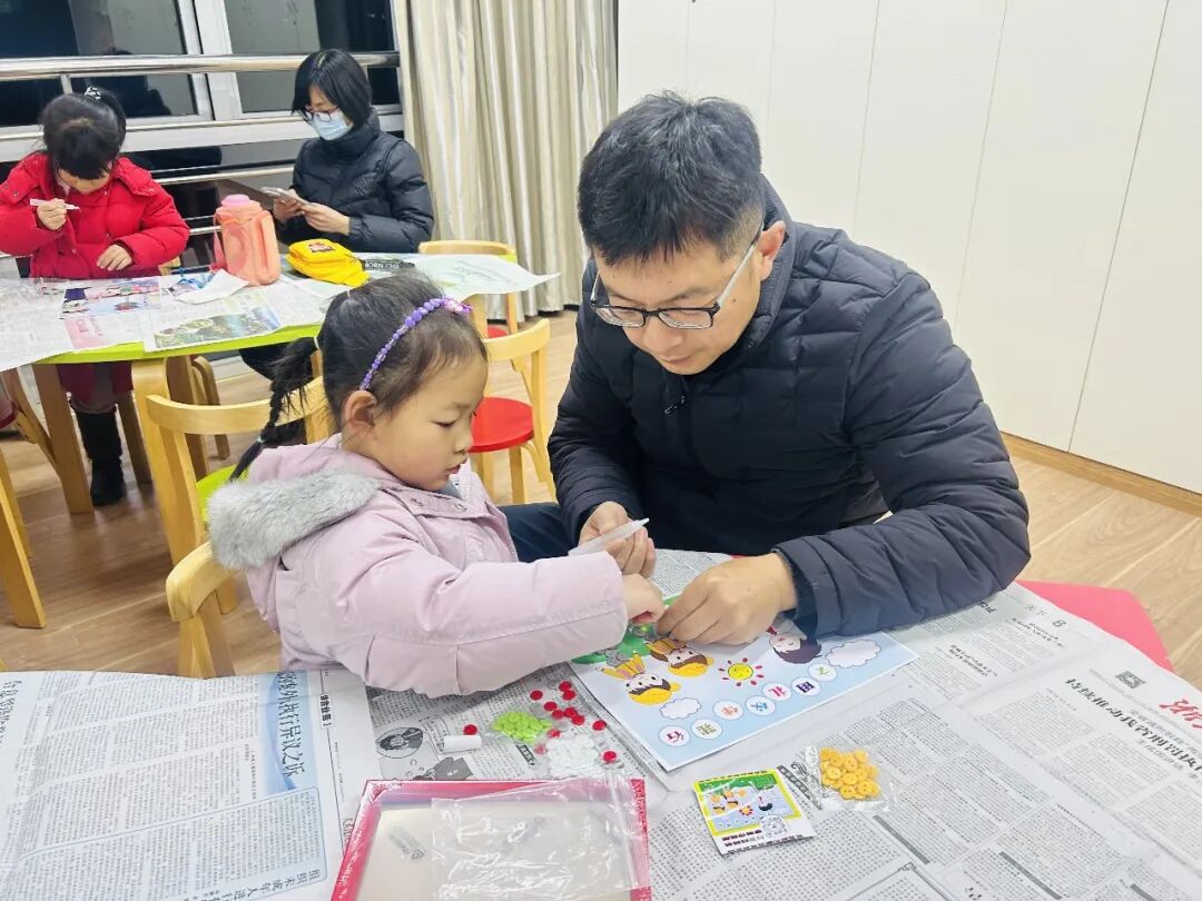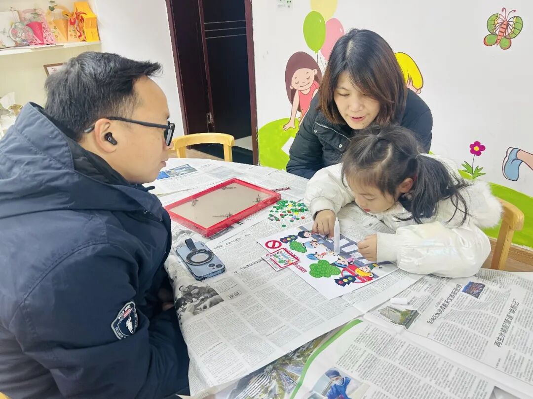 活动现场,孩子们在家长的陪伴下,专注地挑选各色纽扣,细致地进行拼贴。原本普通的一粒粒纽扣,经过亲子间的巧妙构思与协作,慢慢变成了“礼让行人”的暖心场景、垃圾分类的清晰标识、青山绿水的生态美图。每一幅作品都承载着家庭对文明城市的独特理解与美好向往。