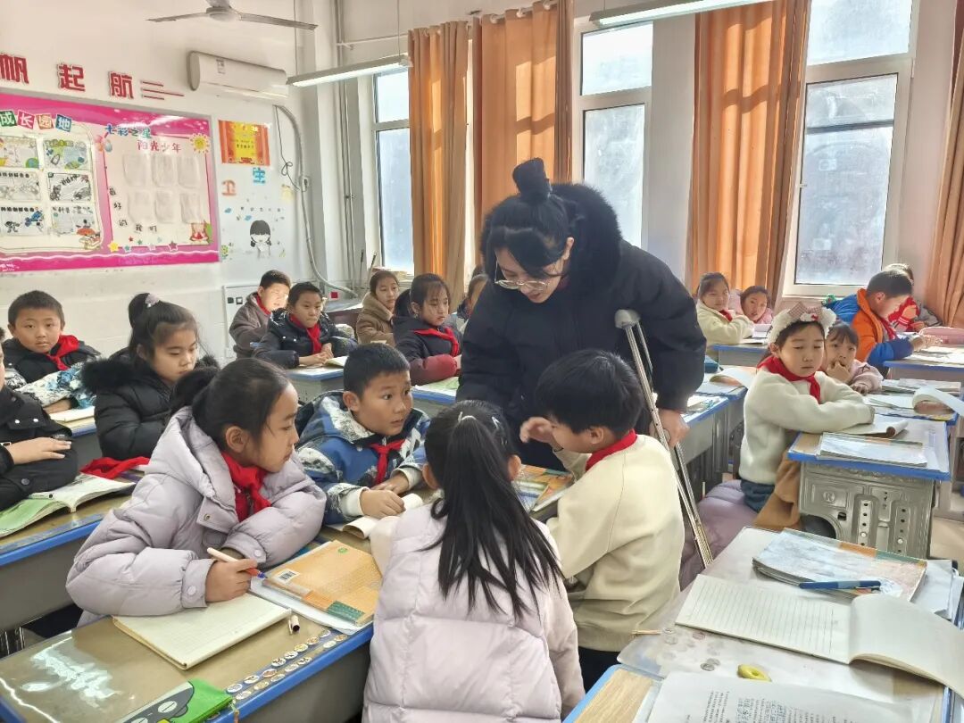 当被问到为什么不请假休养时,王玟老师只是笑着摆手说:“孩子们的课程不能中断,我拄着拐杖能坚持,习惯了就好。”在她看来,这不过是尽了教师的本分,却不知道这份日复一日的坚守,早已在孩子们心中种下了责任与感恩的种子。