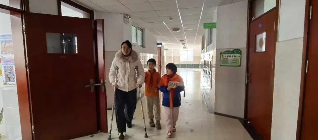 这根拐杖并非装饰,而是王玟老师受伤后坚守讲台的“好帮手”。去年11月,王老师陪学生做体育运动时,不小心摔成腿部骨折。医生反复叮嘱她要居家静养,但她始终牵挂着班里的孩子们,没过多久就拄着拐杖回到了课堂。没有轰轰烈烈的誓言,只凭着不想耽误孩子学习的初心,她把每一堂课都讲得扎实又温暖,师者的担当就藏在这些细微的举动里。