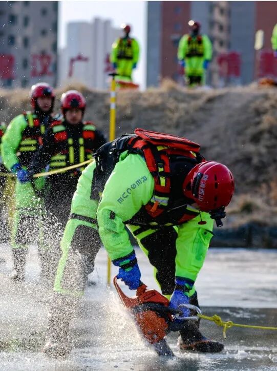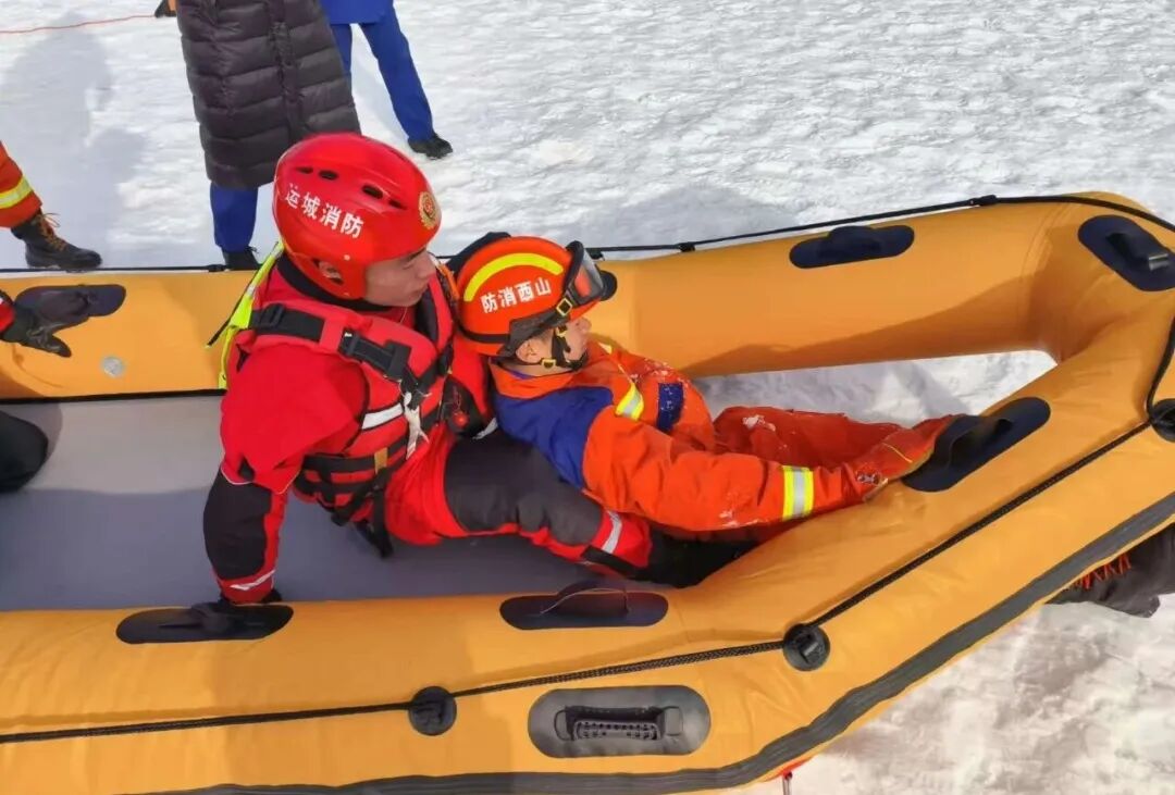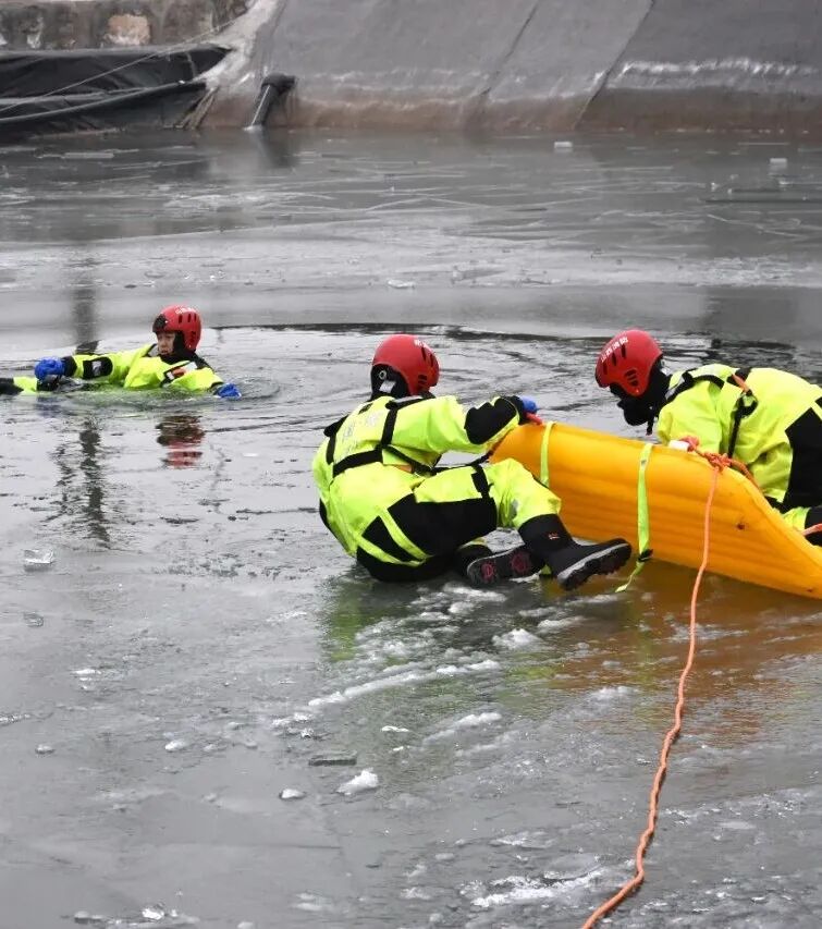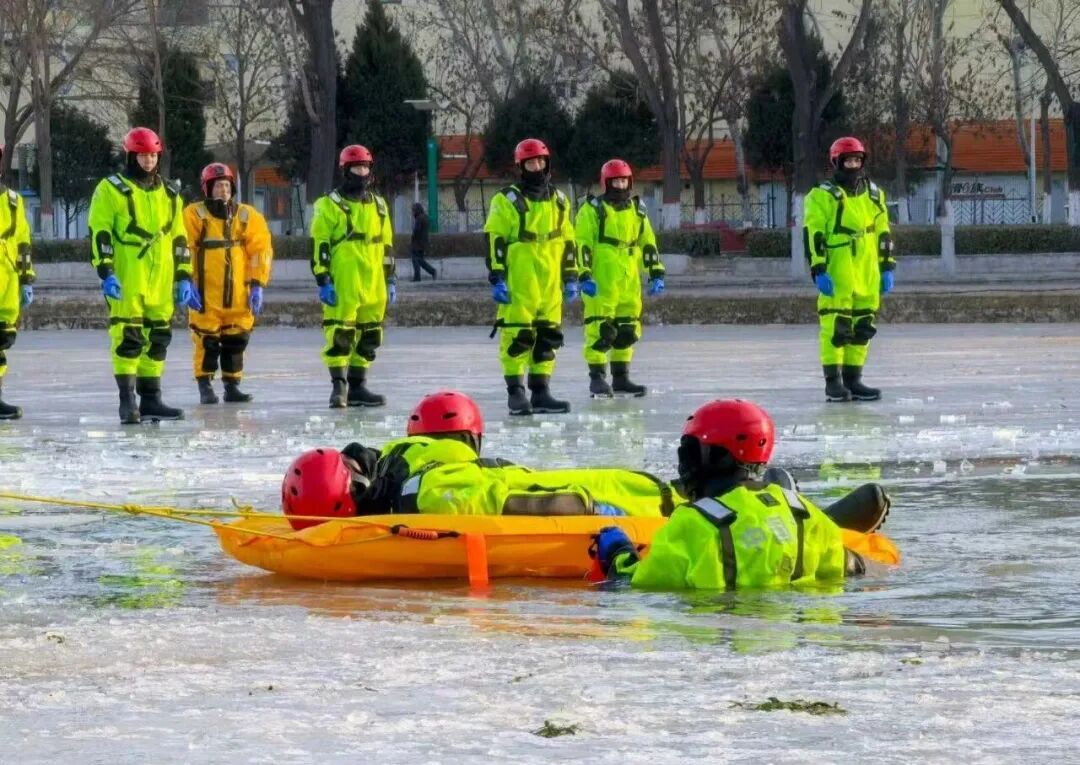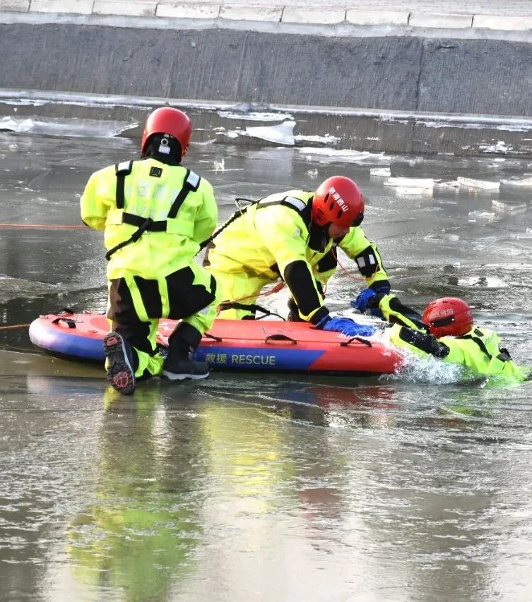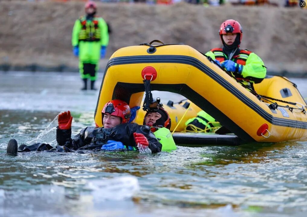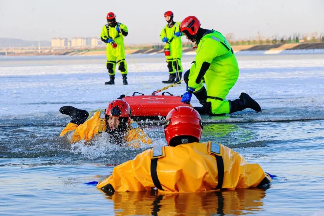 大同市消防救援支队在-17℃的严寒天气下,于御河开展冰域救援实战演练,重点强化落水自救、冰层切割等科目训练,锤炼严寒环境下的救援硬本领。