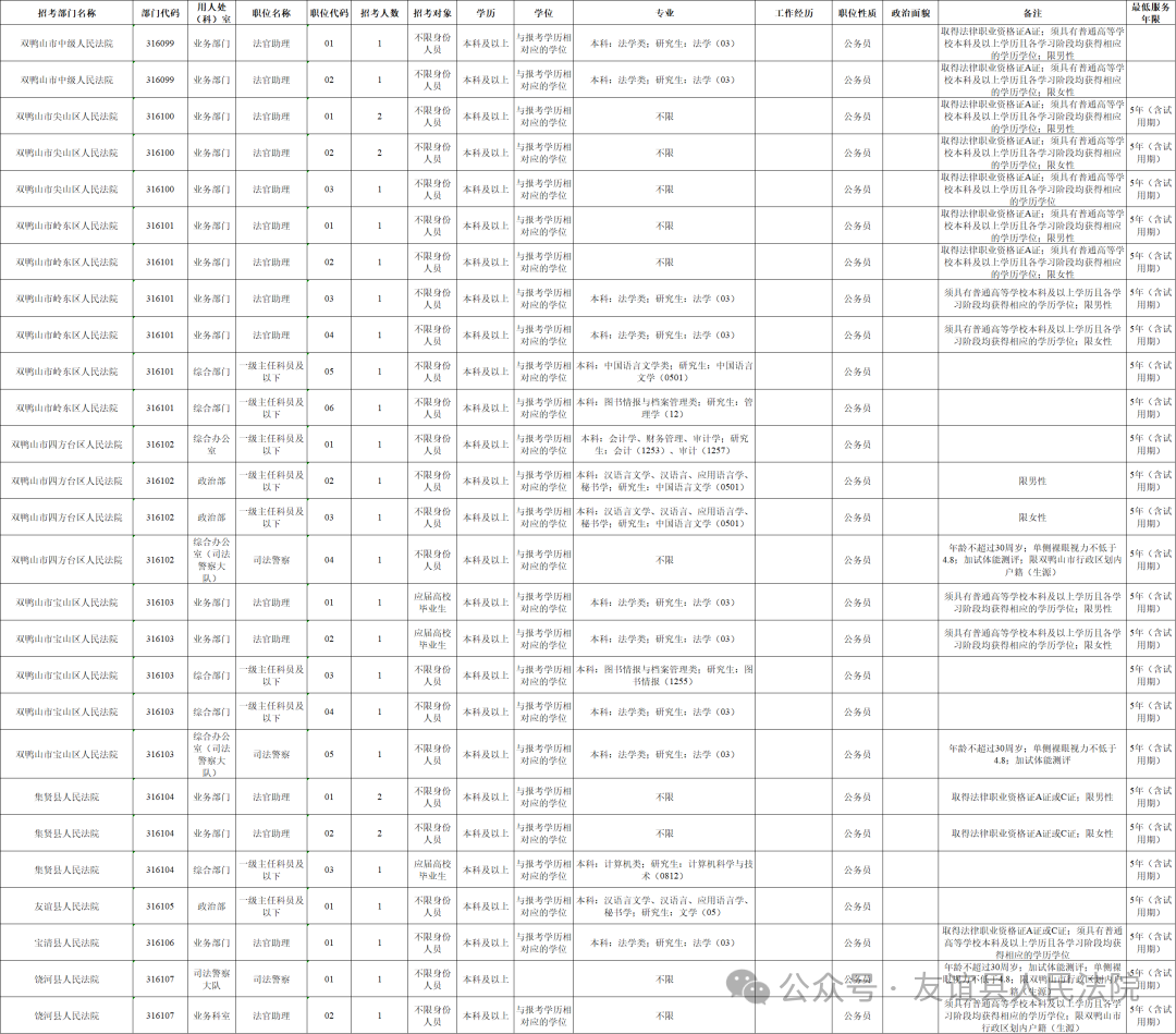 诚邀报考!双鸭山法院2026年公务员招录27岗共31人
