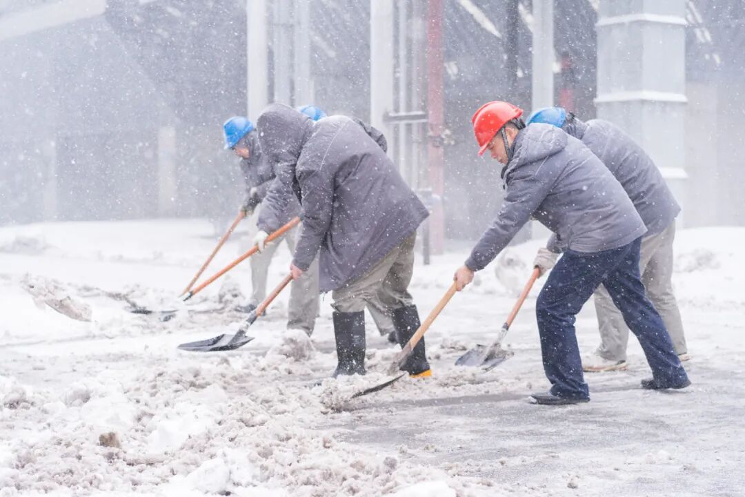 大雪纷飞中,湖北公司干部职工火速集结铲除冻雪,保障巡检安全。