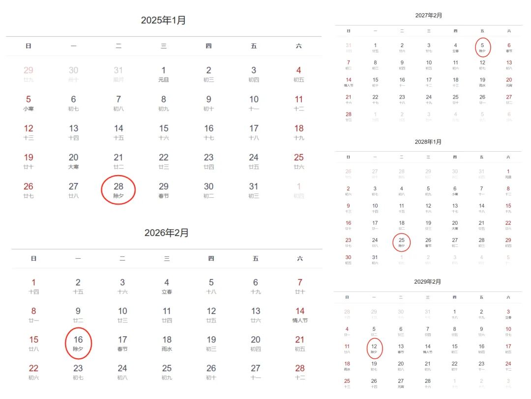 2026年依旧无大年三十 连续五年除夕为腊月二十九的历法奥秘