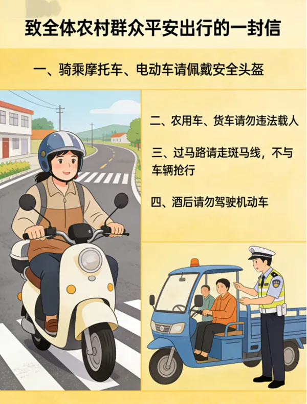 原标题:《梅河新区公安交警致全体农村群众平安出行的一封信|安全提示》