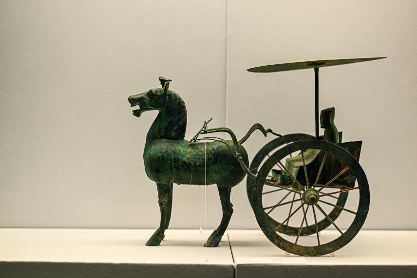 展览精心呈现两件重量级国宝真迹:一件是甘肃省博物馆馆藏的东汉《铜轺车》,它与中国旅游标志“马踏飞燕”出土于同一墓葬,凝聚着汉代工匠对速度与力量的极致想象;另一件是重庆宝林博物馆馆藏的东汉《摇钱树》,树顶飞马立于圆环之上,寄托了古人对吉祥富庶的朴素祈愿。这两件文物不仅是历史的见证,更是春节季“向善向美”的文化原点,让观众提前感受马年的蓬勃气象。