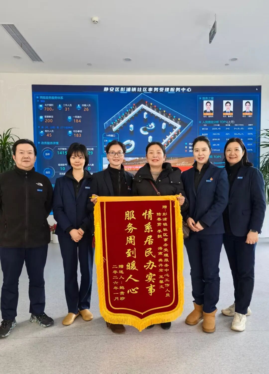 近日,静安区彭浦镇居民鲍女士将一面锦旗送到彭浦镇社区事务受理服务中心,开心地向工作人员道谢:“多亏了你们,我既省了钱,还顺利办了退休!”
