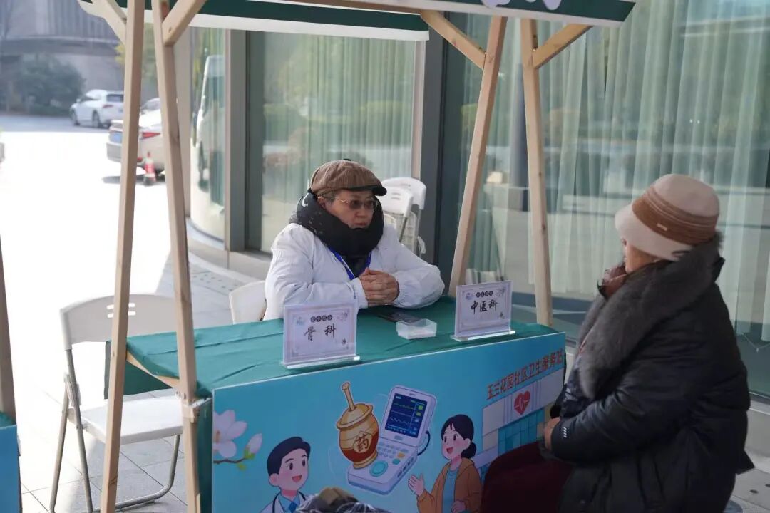 揭牌活动现场同步开设的“健康市集”人头攒动。活动特邀复旦大学附属中山医院青浦分院与青浦区中医医院的消化内科、肾内科、骨科、中医科等领域专家坐诊,为居民提供一对一健康咨询、血压血糖检测、中医适宜技术体验、家庭医生签约及互联网医院宣传等多元化服务。
